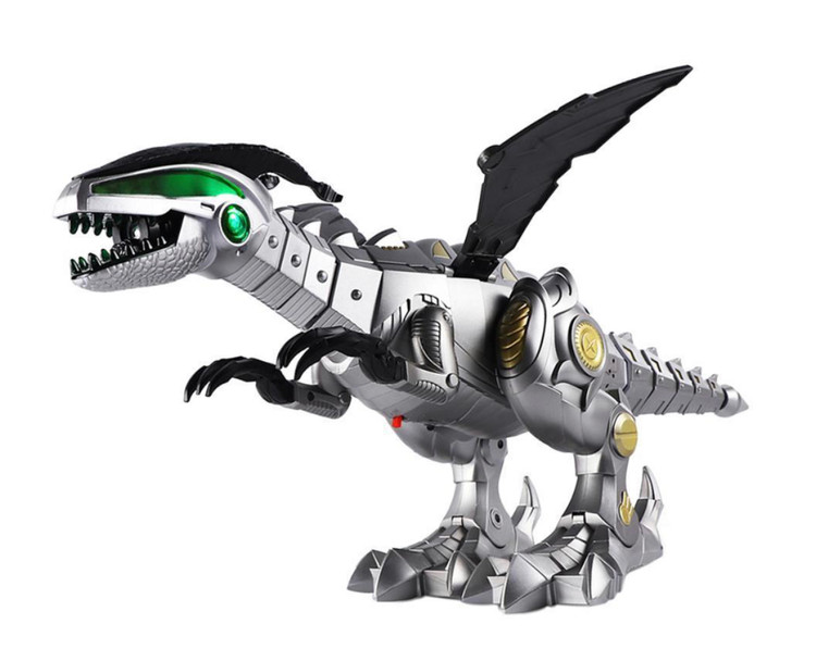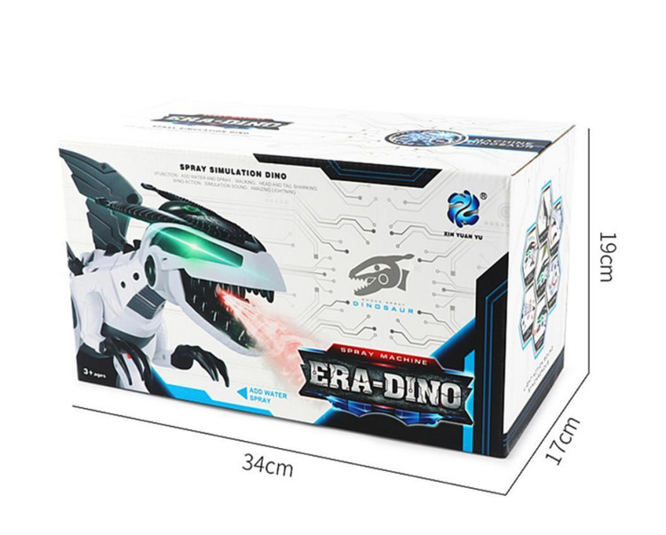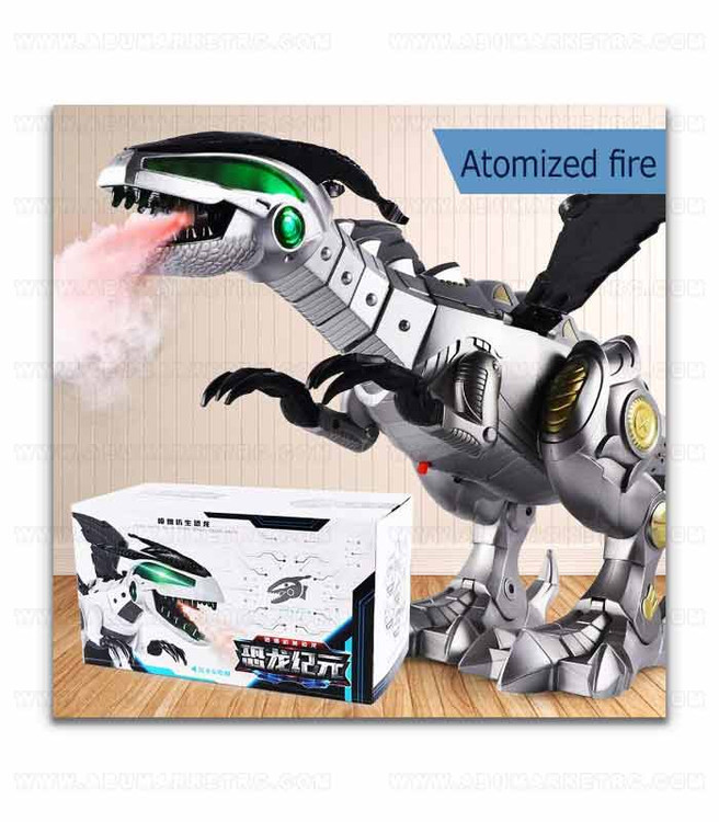 ربات دایناسور دودزا بال دار باطری خور سایز بزرگ(طول ربات حدود ۴۵ سانتی متر) با ۳ عدد باطری قلمی کار میکند وقتی روشنش کنید شروع به حرکت بسمت جلو،حرکت سر، دست، دم و بال،صدای واقعی دایناسور و راه رفتنش و بخار کردن(دود) میکند دارای چراغ در چشمها و دهان دایناسور در حین حرکت سر و دست ربات هم حرکت دارد قدری آب در مخزن سر دایناسور می ریزید و در حین حرکت اسپری میکند انگار که دود از دهان ربات بیرون می آید(مانند دستگاه بخور) دارای یک ظرف پلاستیکی جهت ریختن اب در مخزن سر دایناسور دم و بال دایناسور بصورت جداگانه در پک هست که می بایست متصل شوند ابعاد بسته بندی: ۳۴ × ۱۹ × ۱۷ سانتی متر ابعاد ربات: 46 * 30 * 25 سانتی متر