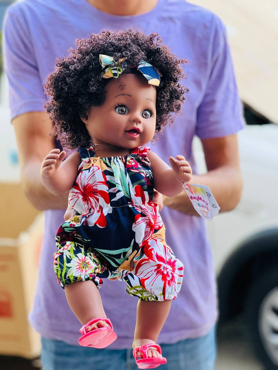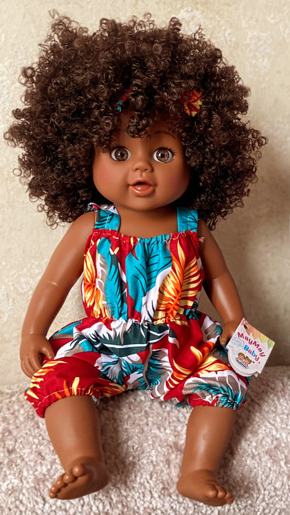 عروسک مای مای سیاه پوست 45 سانتی متر ارتفاع دارد و از بهترین متریال ممکن در ساخت آن استفاده شده تا عروسک مای مای سیاه پوست تبدیل به یکی از جذاب ترین و بهترین کادو شود. وزن تقریبی این عروسک 700 گرم است.