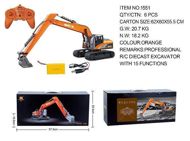 ماشین کنترلی بیل مکانیکی هوینا در مقیاس 1:14 و دارای قابلیت 15 کاناله است. جنس این محصول از آلیاژ و پلاستیک است. این بیل مکانیکی دارای 2 باتری کنترل از راه دور AA است که می بایست آن را به صورت جداگانه تهیه نمایید. این محصول تا فاصله 30 متر را می تواند از راه دور در مدا 15 الی 20 دقیقه کار کند.