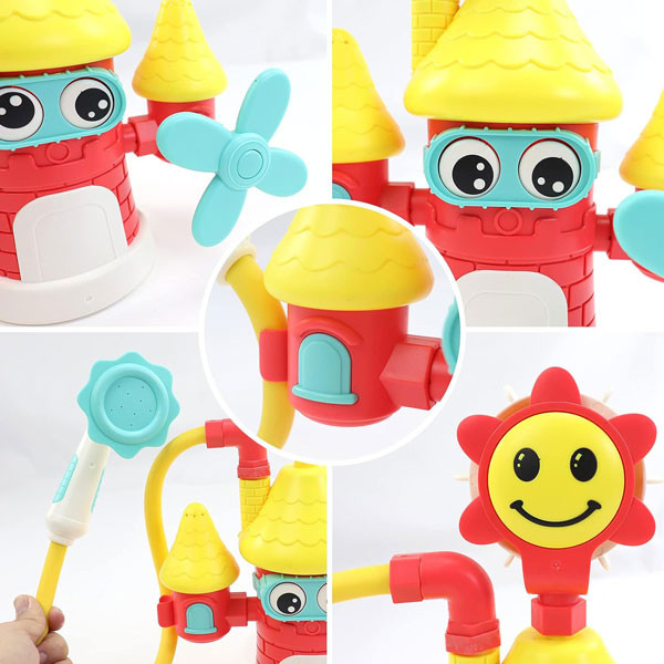 بهترین راه برای از بین بردن ترس کودکان نسبت به آب و حمام ایجاد فضایی جذاب و آرامش بخش در هنگام حمام کردن نوزاد است. دوش و آبریز حمام قلعه یک دوش آب زیبا و کاربردی برای شستشو بازی و سرگرمی کودک در حمام محسوب می شود. کافیست اسباب بازی دوش حمام کودک طرح قلعه را به دیوار، دیواره ی وان یا هر تکیه گاه دیگه ای متصل کنید. بالای دوش قابلیت چرخش به بالا و پایین داره و به راحتی میتوانید سر دوش رو به جهت دلخواهتان تنظیم کنید. همچنین در این دوش بامزه اگر انتهای دوش را داخل آب قرار دهید و با فشار دادن دکمه آب پمپاژ میشود و از دوش خارج میشود.
