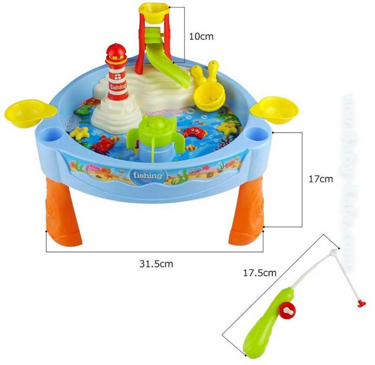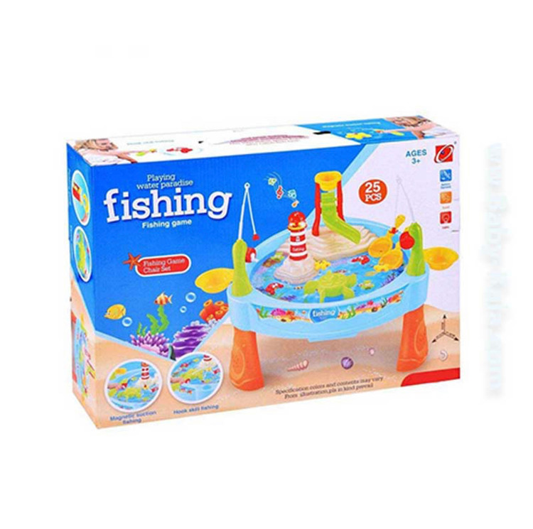 اسباب بازی میز ماهیگیری ایتم 889.68 یک اسباب بازی مهیج کودکانه با سه عدد پایه است که هر پایه حدود 17 سانتیمتر ارتفاع داشته، این محصول شامل وسایل مخصوص ماهیگیری از جمله یک فانوسدریایی، قلاب ماهیگیری، قاشقک، پنکه چرخشی، یک ظرف آب با سرسره و پایه صخرهای است که همه آنها بر روی صفحه متصل میشوند و هر یک دارای عملکرد خاصی هستند که بازی را برای کودک به شدت هیجان انگیز نموده و به آنها ماهیگیری یاد میدهد.
