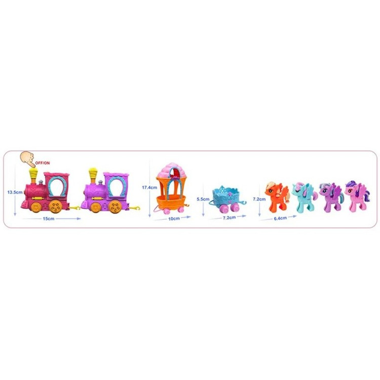 | اقلام همراه | 2 عدد فیگور پونی,ریل,قطار,سبد |