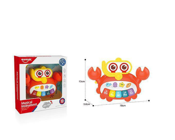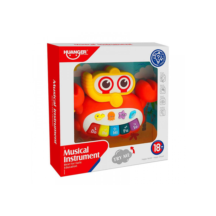 پیانو موزیکال هانگر طرح خرچنگ مدل HE0535 دارای کیفیت فوق العاده ای است. یکی از اسباب بازی های بسیار مورد علاقه نوزادان است. رنگ های زیبا و دلنشینی دارد که هر نوزادی را سرگرم و آرام می نماید. این پیانو در رشد و پرورش نوزادان بسیار کارایی دارد. هر کسی که یکی دو محصول از اسباب بازی برند هانگر را برای فرزند خود تهیه کرده باشد به کیفیت و کارایی و دوام بسیار بالای این محصولات پی برده است. مشخصات اسباب بازی پیانو خرچنگ هانگر HUANGER : دارای کلید روشن / خاموش تعداد 5 کلید از نت های موسیقی برای نواختن موزیک دلخواه 4 عدد کلید با نمایی از حیوانات دریایی برای پخش صدای حیوانات دارای چراغ های چشمک زن فاقد مواد مضر دارای جعبه مقوایی