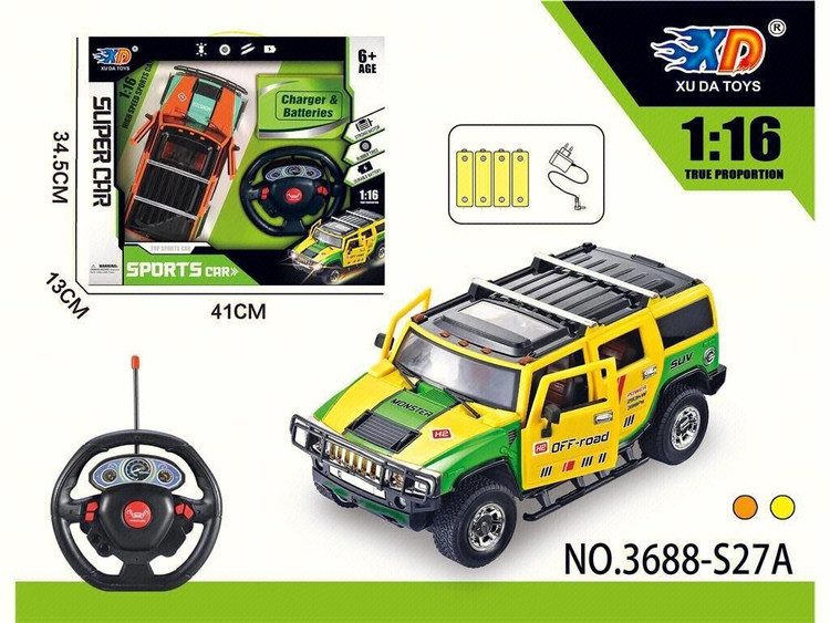 در ماشین کنترلی هامر شارژی آیتم 3688.25 یک فرمان وجود دارد که دارای دکمههای مختلفی بر روی آن مانند دکمه دندهها که سه حالت جلو، عقب و خلاص دارد است. کلید بوق زدن و همچنین کلید باز شدن، روشن کردن ماشین و ترمز بر روی فرمان قابل مشاهده است. ریموت کنترل فرمانی این محصول با باتری قلمی انرژی میگیرد. طول فرمان حدود 25 سانتیمتر است و ابعاد خوب و مناسبی برای بازی کودکان بالای سه سال دارد و به راحتی در دستان آنها قرار میگیرد.